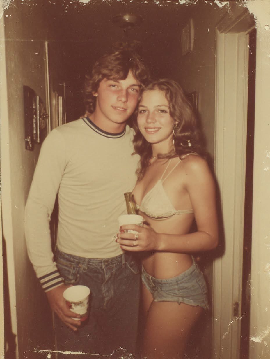 Die umgekehrte Bildsuche zeigt jedoch noch eine andere, wohl authentische Fotografie, da sie sicher älter datiert. Ebenfalls ein junges Paar, ebenfalls mit Becher und Bierflasche – nur nicht so perfekt passend in die heutige Rückprojektion. Sondern genau so, wie es damals wohl war: weniger perfekt, weniger sexualisiert, mehr fettige Haare und pubertäre Unsicherheit. Es steht zu vermuten, dass diese Fotografie der Ursprung der KI-Generation war – mit der Vorgabe, sie konsumiger zu machen, glatter, anschlussfähiger an unsere Erinnerungen. Nicht an die Realität der Zeit, sondern an das Bild, das wir heute von ihr haben möchten.